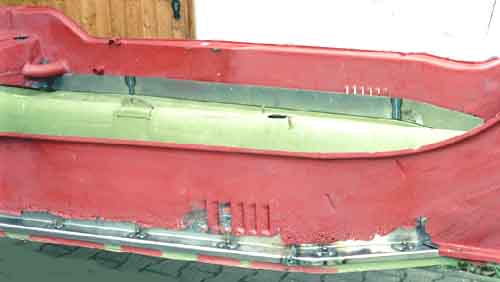 | Seitenteil rechts hinten während der Reparatur | Seitenteil links hinten von innen im Rohzustand |