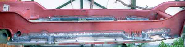 | Altes und neues Blech verschweißt und ausgerichtet ergeben die neue Karosseriebasis. |
